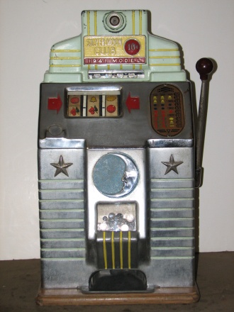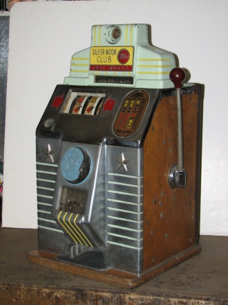 1941 Jennings Silver Moon Chief, 10 cent. Very nice original machine not restored, original cash box, original back door, original reel stripes. original locks on back door, cash box with original ODJ keys.