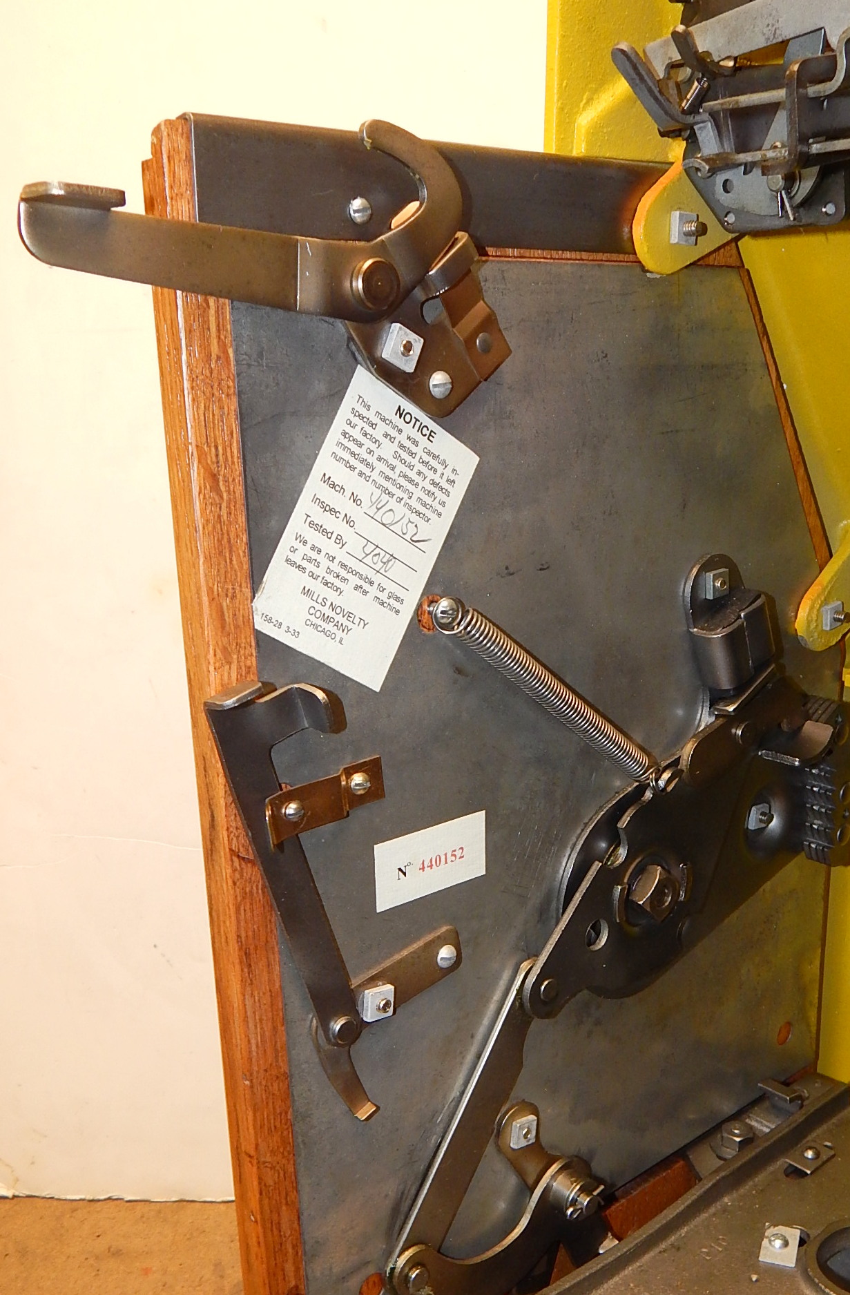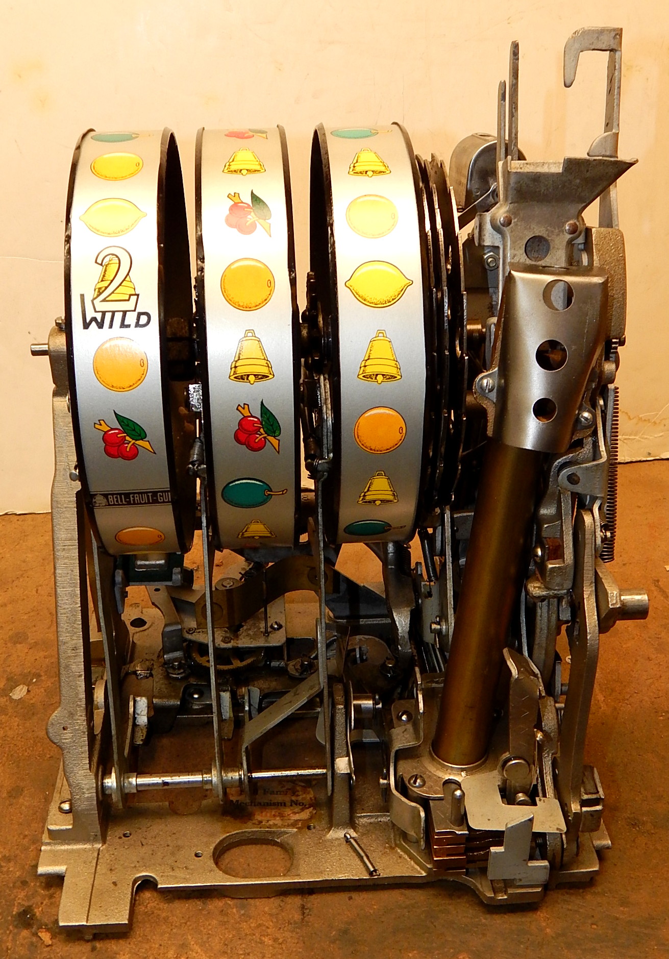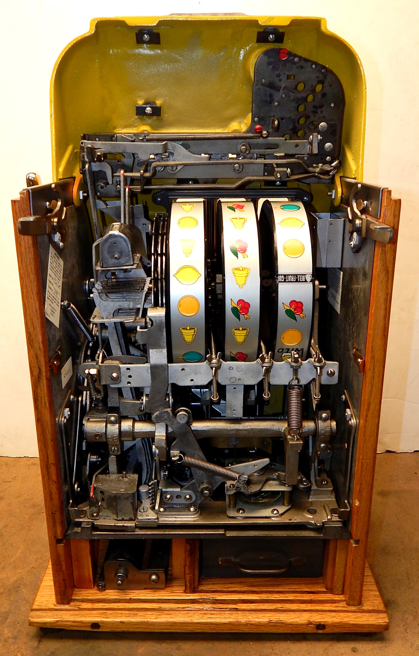 Mills 1959 Deuce Wild 25 cent, This is a very nice previously restored machine. Colors Yellow with Red. Mint condition original award card, Jackpot with reserve, original back door with original Mills lock with one key, original cash box. Oak cabinet Play easy.
