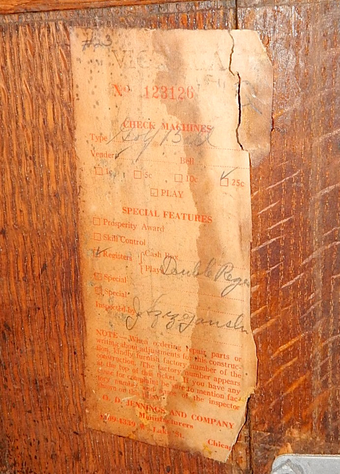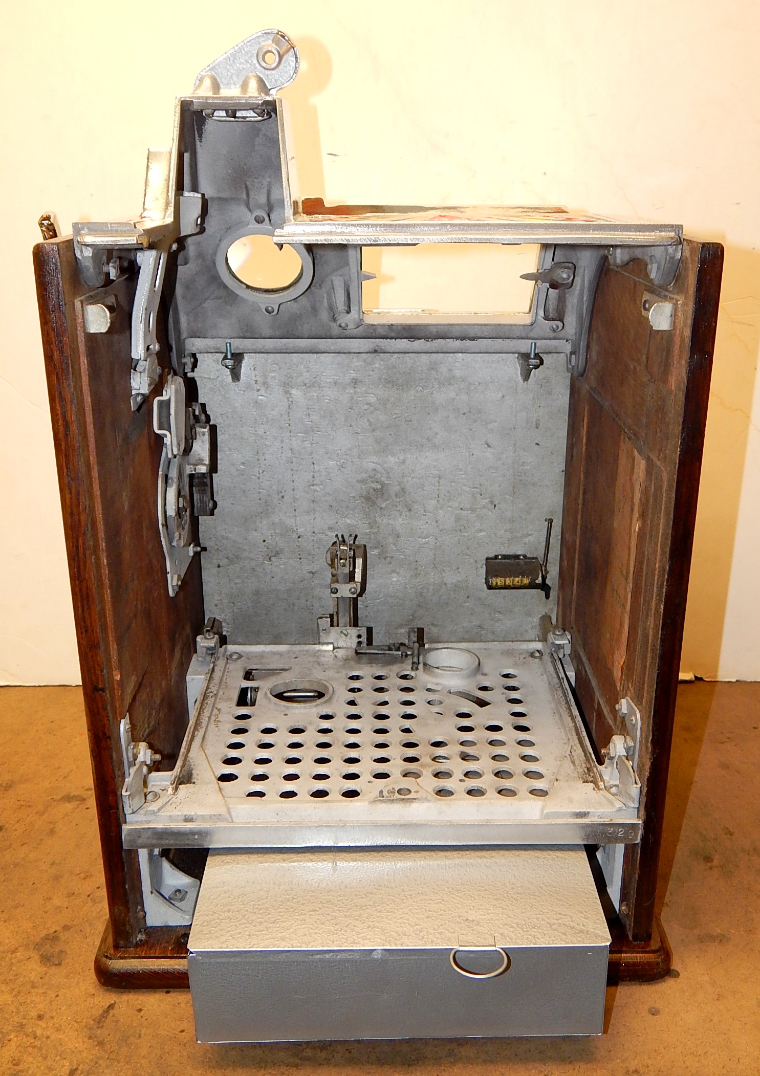 A little history about this machine. The Sportsman is basically a Today Vender or Victoria model converted into a Golf Ball Vender. Back when most slot machine companys were trying to build new slots the parts were hard to get because of World War One, Jennings decided they would convert previous manufactured machines in to a Golf Ball Vender giving new life to older machines. There was a lot of angles to the Sportsman Golf Ball Vender game and they ranged from coding the golf balls dispensed for redemption at the pro shop for merchandise at a discount. Anything to get people to play the machine more.