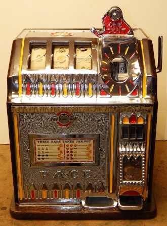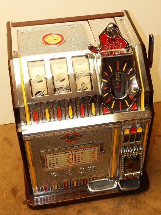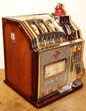1932 Pace Bantam Penny, restored back to the original colors, original money bag, original front door, pace lock and key, Jackpot. plays and pays as it should.