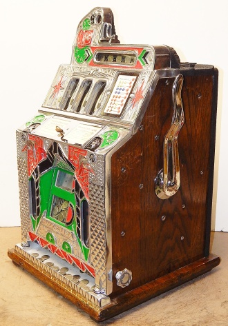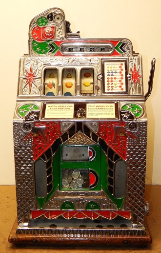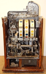 1931 Mills Silent FOK Jackpot Vender 5 cent, Restored with original tin reel strips in mint condition, working front mint venders, original back door locks with keys, original back door, cash box. Plays and pay as it should.