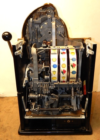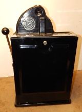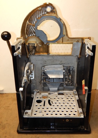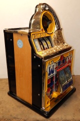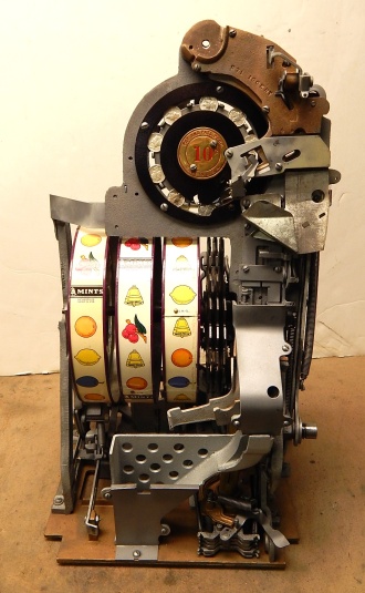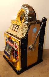 Watling 1948 Rol-A-Top "Checker Board" 10 cent. Previously restored, nickel plated, painted back to the original colors. Original reel strips, original award card, original back door with Ace lock and key, original cash box. Twin Jackpots.