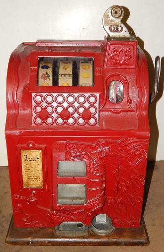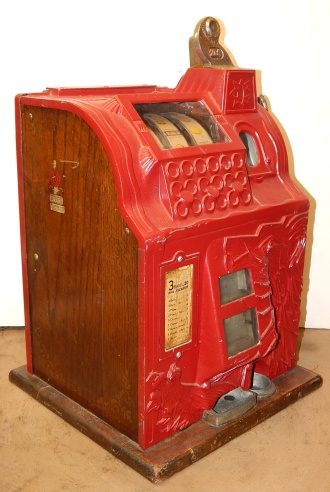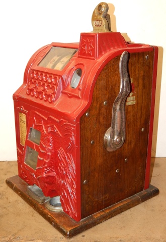 1932 Mills Lion Head 10 cent. in line to be restored if not sold first. Original cashbox, original metal reel strips, award card, back door with lock and key.
