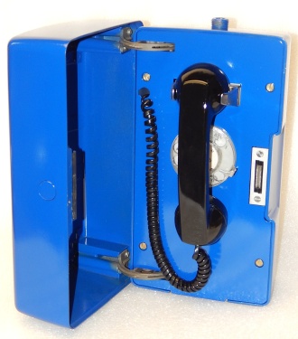 1987 Police call Box, 7" wide, 6" deep, 13" tall, about 10 pounds. The previous owner said it was removed from Ronald Ragan National Airport back in the 90's. It has a dial tone when plug in, not sure about the ringer. Painted Blue with new vinyl decal.