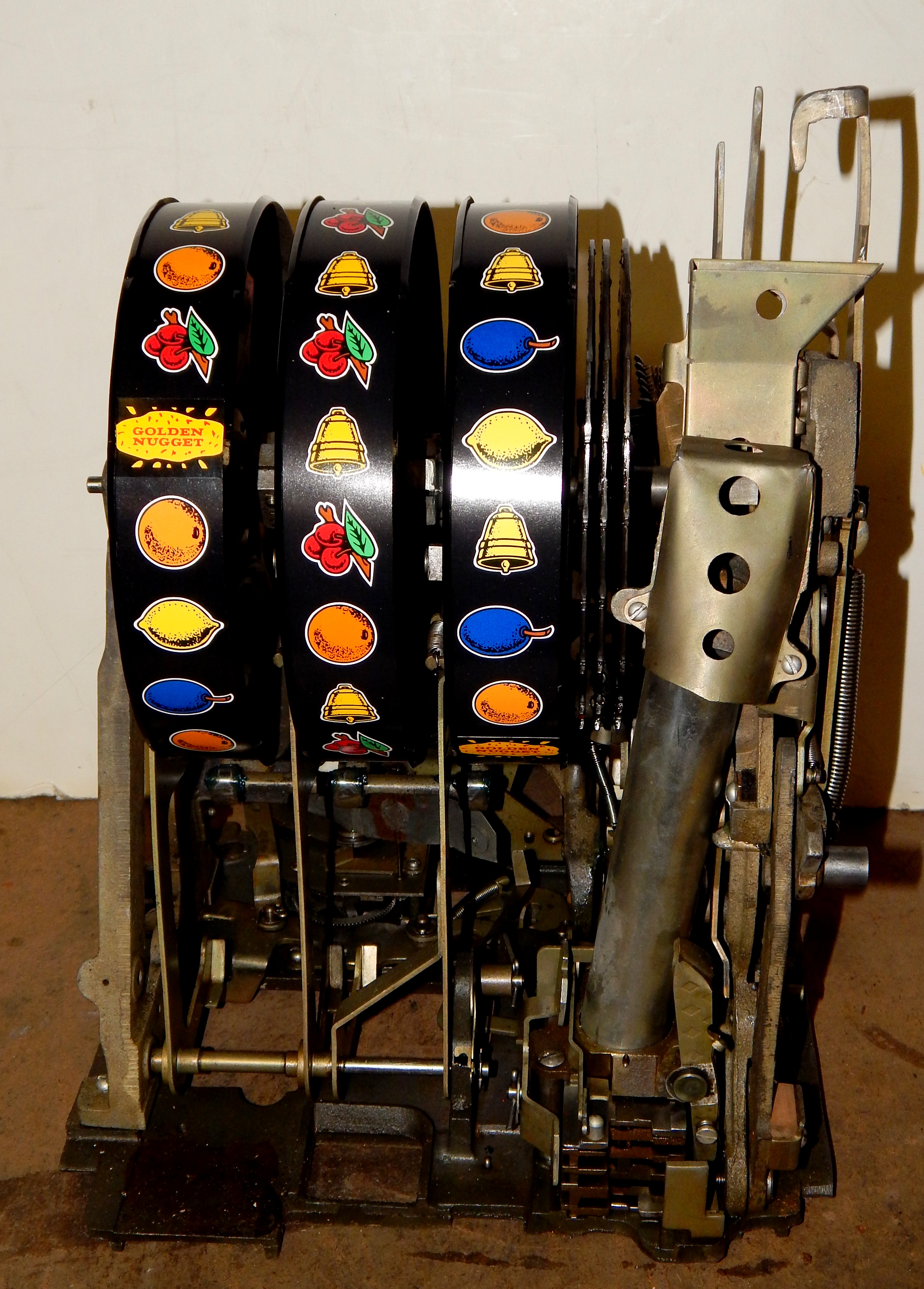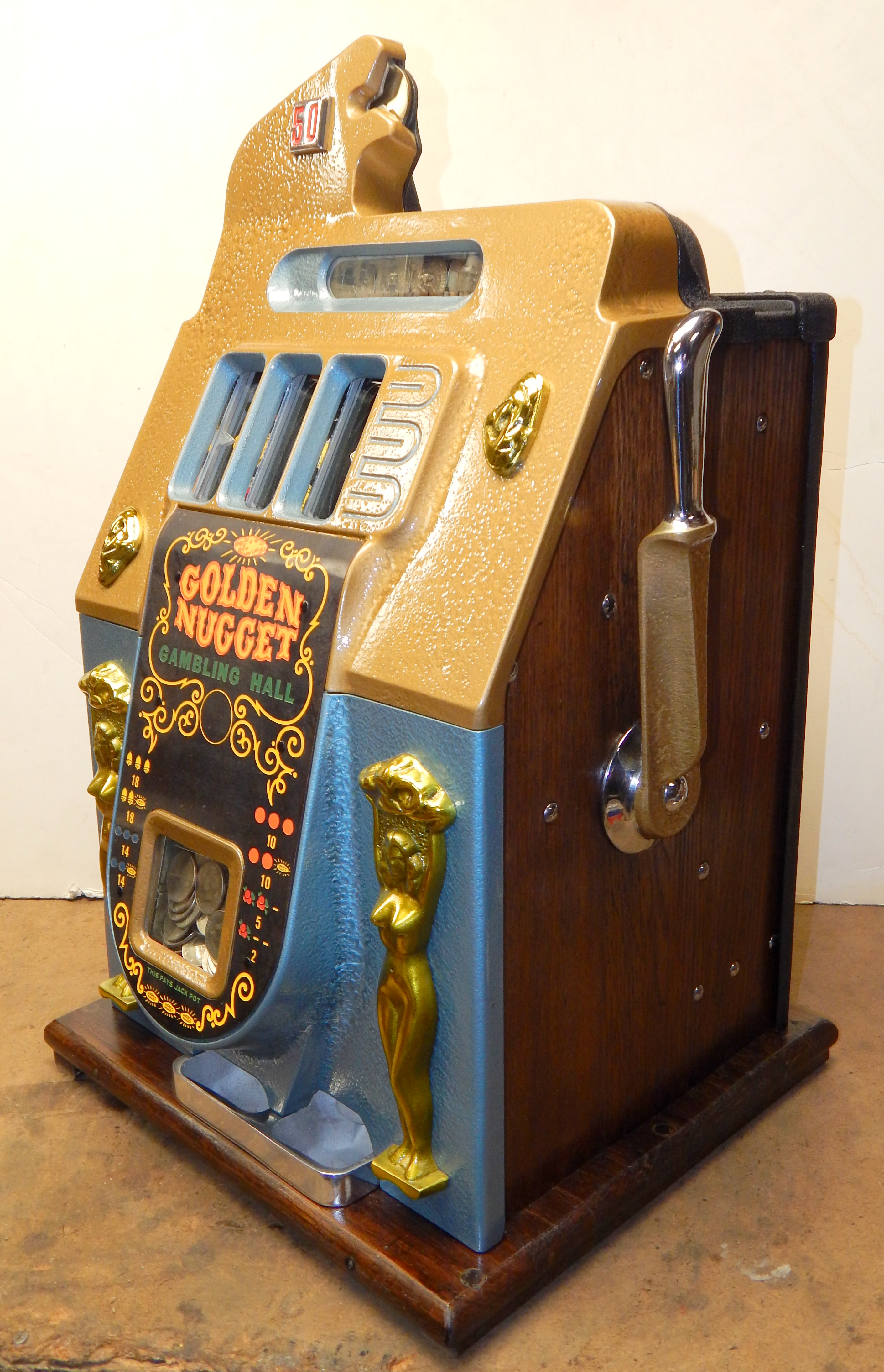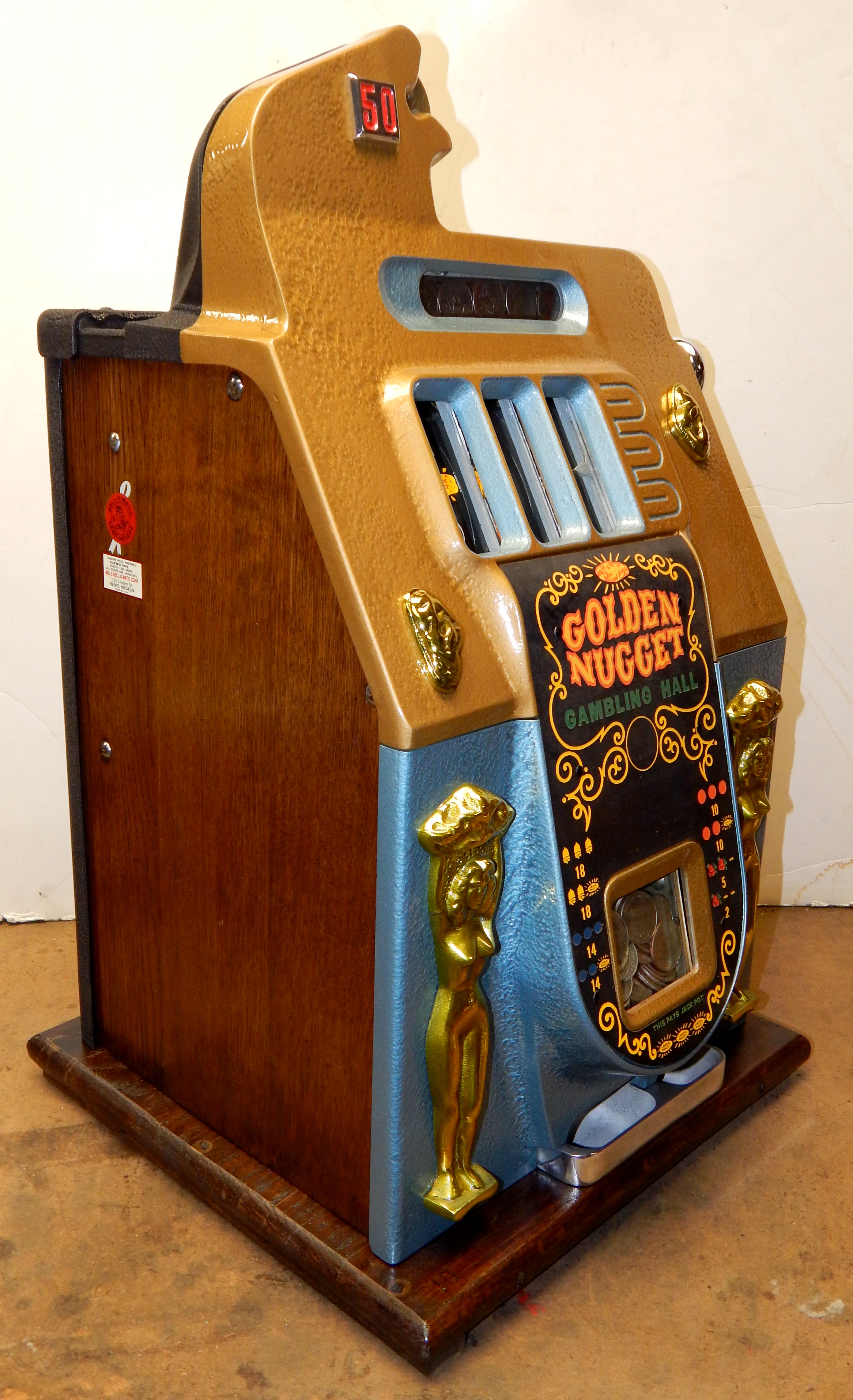 This machine was never operated in the Golden Nugget casino in Las Vegas. There were only a hundred or so Golden Nugget machines made for the casino back in the 50s. I don't want anyone to think this is a original machine from the casino. The golden nugget kit was added to an original 1946 Black Cherry which only consist of two dolls, two nuggets, reel strips, and a award card. The machine it self is all original made by Mills