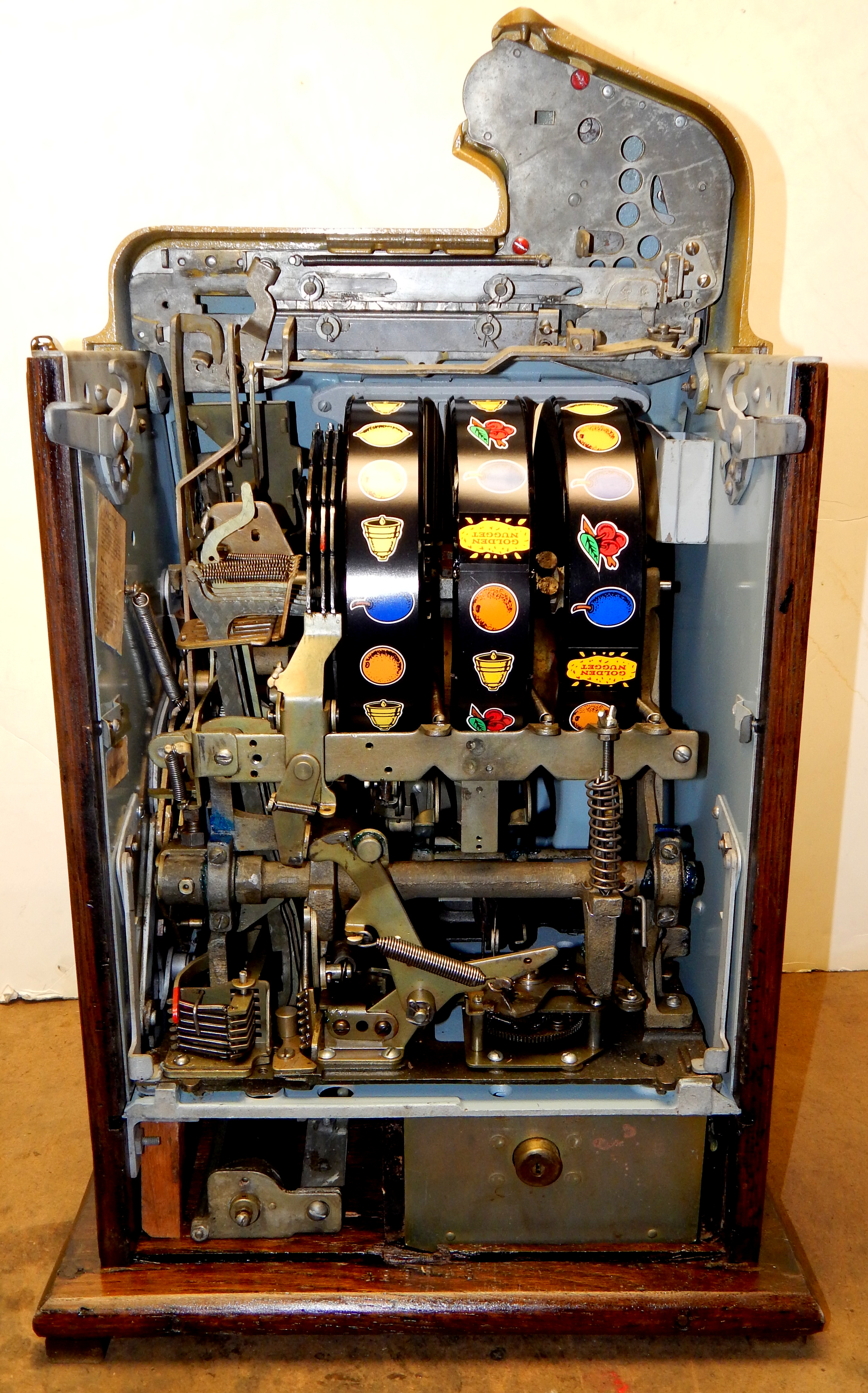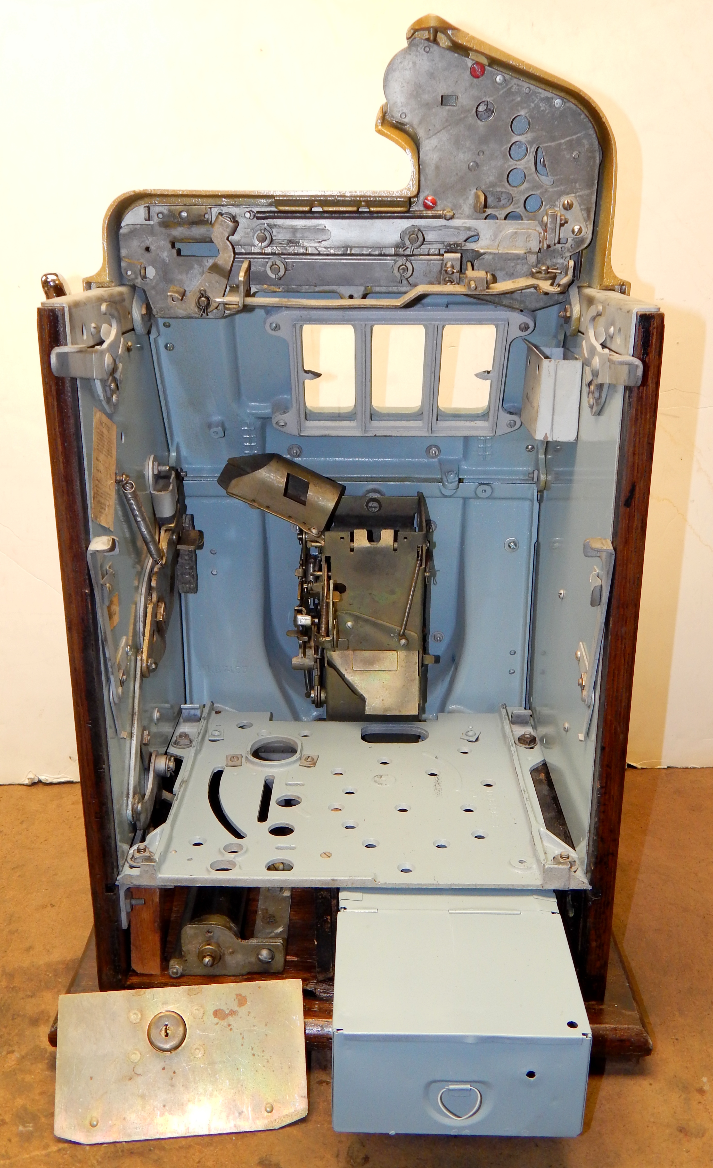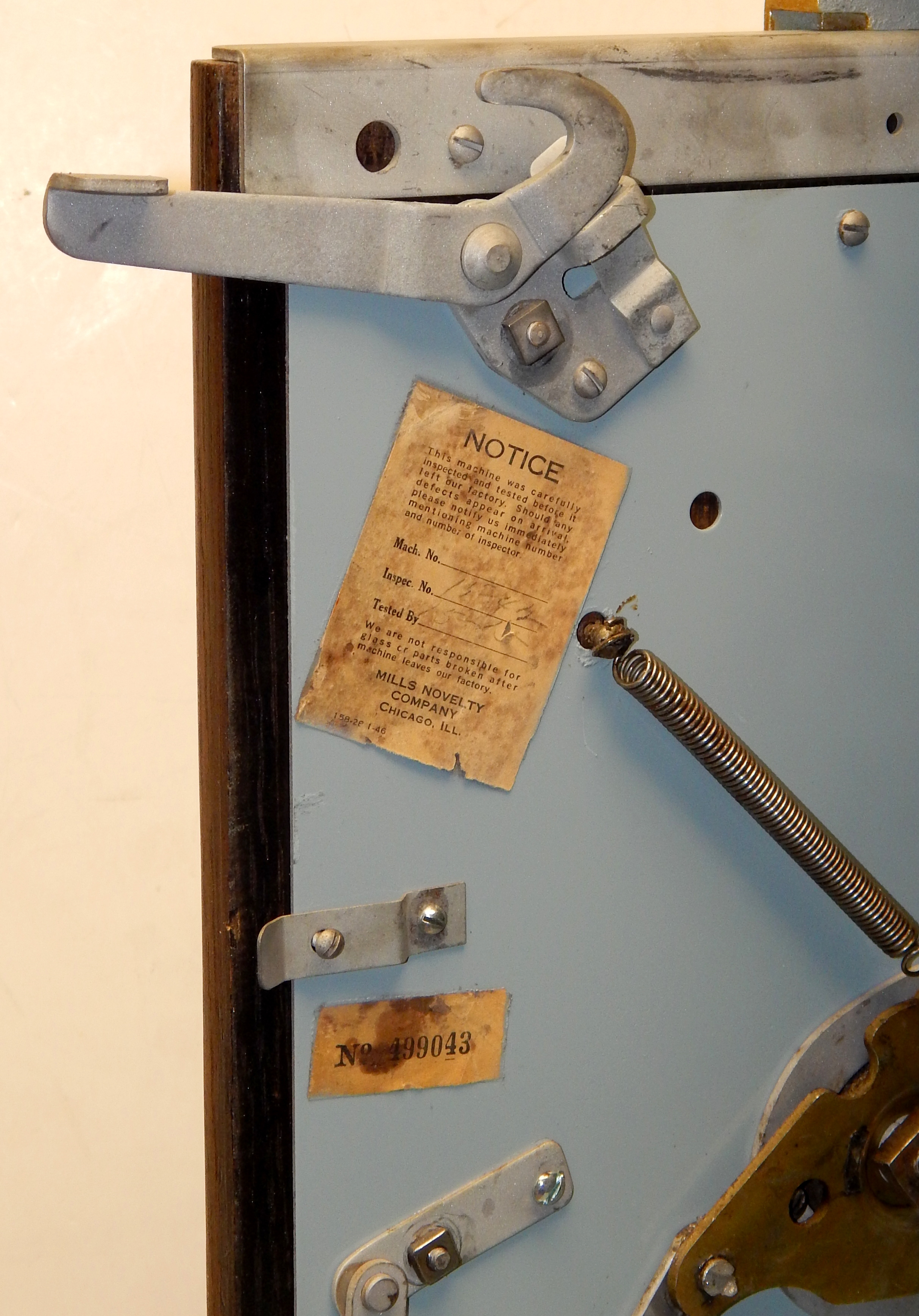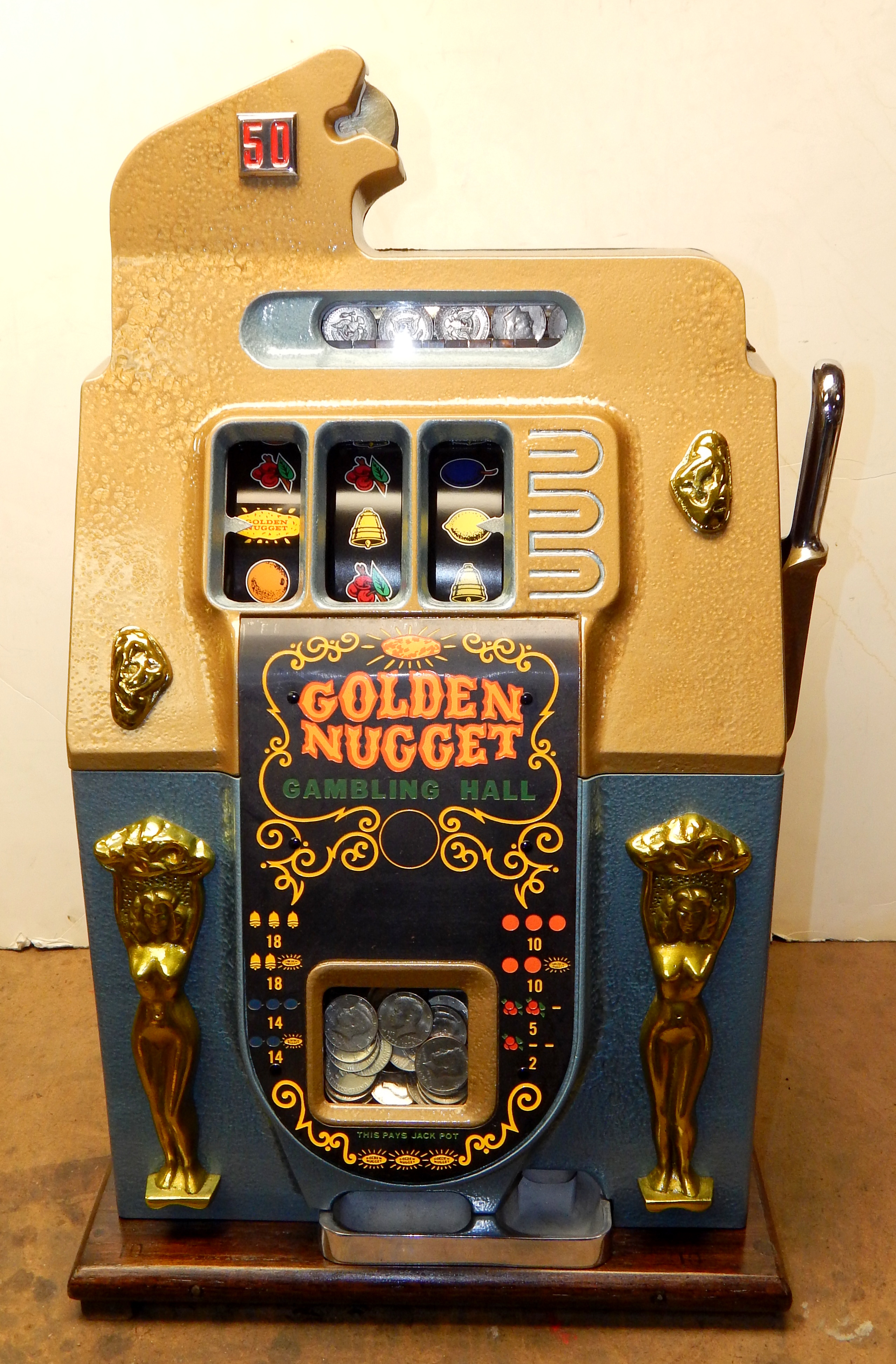 This machine was never operated in the Golden Nugget casino in Las Vegas. There were only a hundred or so Golden Nugget machines made for the casino back in the 50s. I don't want anyone to think this is a original machine from the casino. The golden nugget kit was added to an original 1946 Black Cherry which only consist of two dolls, two nuggets, reel strips, and a award card. The machine it self is all original made by Mills