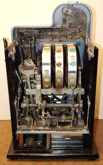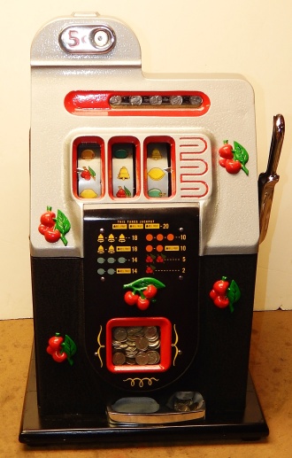 Mills 1947 Black Cherry 5 cent, . This is a very nice machine. restored back to the original colors. Jackpot with reserve. Plays very easy, 2-5 payout.