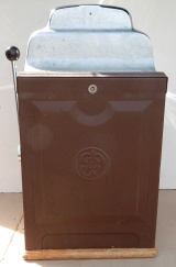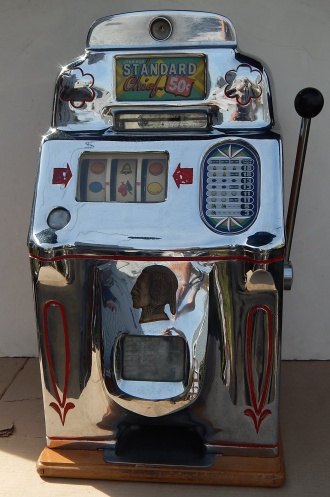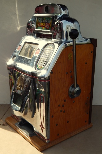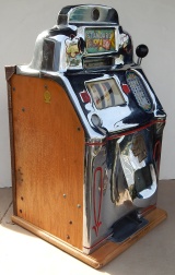 1946 Jennings "Chrome" Standard Chief 50 cent, Another original large coin machine with matching serial number. Original award card and marquee, original cash box, original back door, with Ace back door lock and key, original reel strips, jackpot with reserve. Very nice oak cabinet, chrome plating 8.5 out of 10, not bad for a 65 years old machine. Plays and pays as it should.