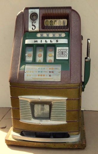 Mills 1948 Bonus Hi-Top 5 cent, "original condition" with the Hard to find Bonus feature. original reel strips, original back door, original cash box, Mills locks with keys. If your looking for a nice untouch original machine, this one is for you.