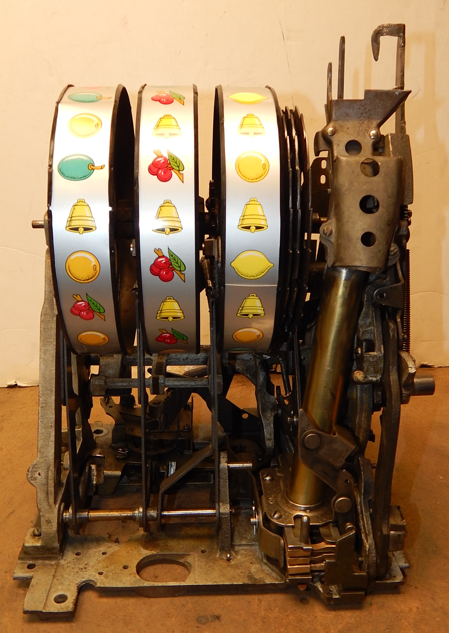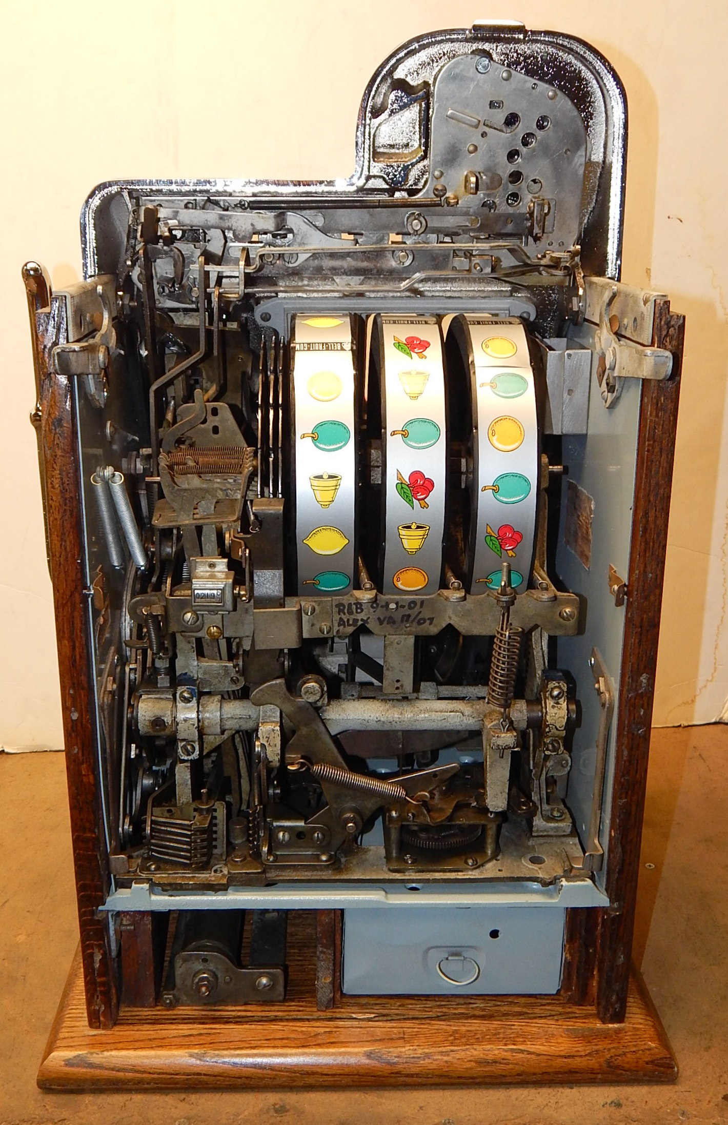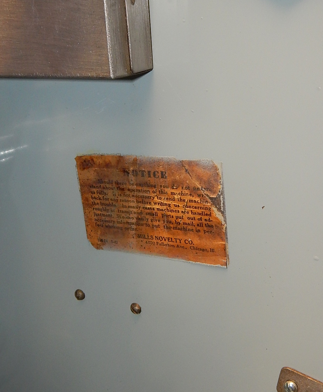 Mills 1941 Diamond Front 25 cent "Chrome". This is a very nice machine restored back to the original chrome finish. The cabinet on this machine was in such fine condition, we did not have the heart to hide this beautiful wood cabinet with paint, so its finished and stained instead of painted to bring out it's natural beauty. Mint condition award card, Jack pot with front loader, original back door and Mills lock with one key, original cash box. mint condition reel strips. Plays very easy, 2-5 payout.