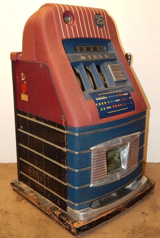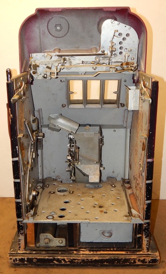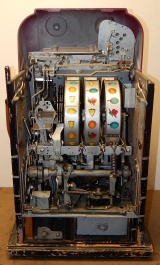 Mills 1947 Jewel Bell Hi-Top 25 cent, Original condition "not restored". Original award card, reel strips, original back door, original cash box. Plays very easy. In line to be restroed.
