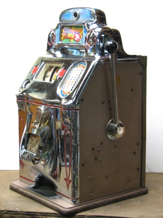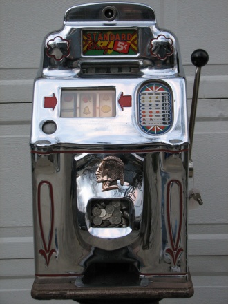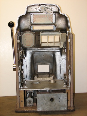 5 cent 1947 Chrome Standard Chief, in original condition, not restored. This machine has original cash box, back door, self loading jackpot. Plays and pays as it should.