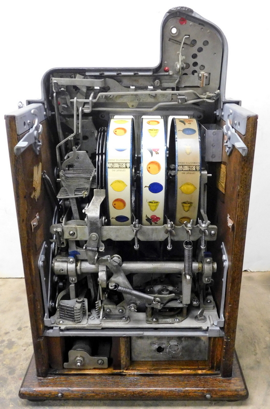 Mills 1931 War Eagle 25 cent, this is a very nice machine complete and original. This machine was restored back to the original colors, Yellow, trimed in Red, Black. Has Jackpot with reserve, original back door with original Mills lock with one key, original Reel Strips, original cash box. The award card is the only thing on this machine that is an reproduction, Plays very nice.