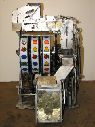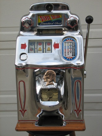 $1.00 1946 Chrome Standard Chief, a very nice large coin machine. An older restoration, chrome plated. Jackpot, original cash box and back door. Plays and pays as it should.