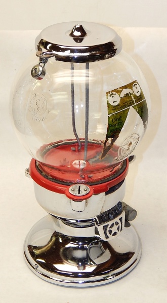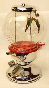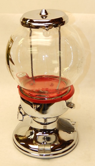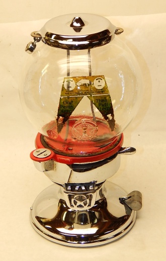 Columbus Model "K" gumball vendor, Penny. The Model "K" was the forerunner of the model14, delivered one gum ball. Made by Columbus Vending Co.1917