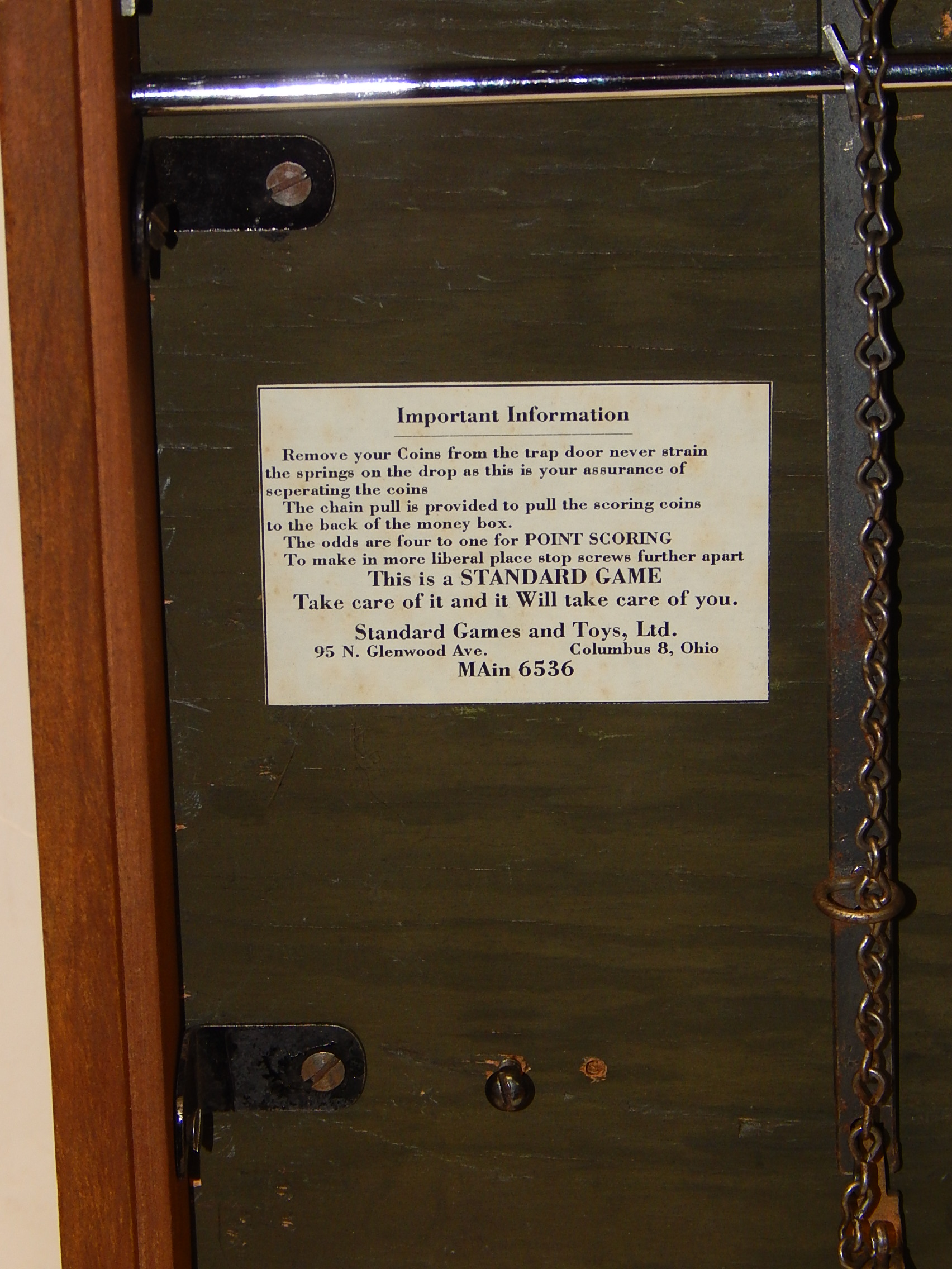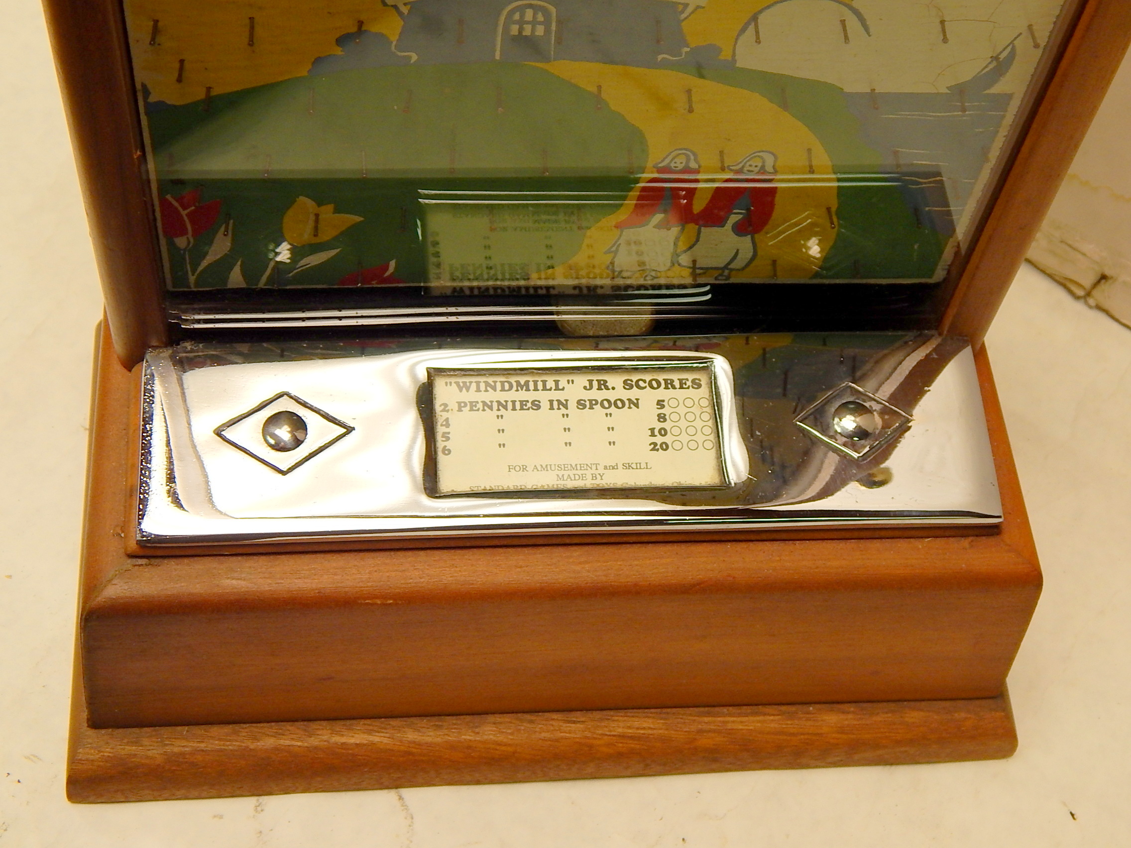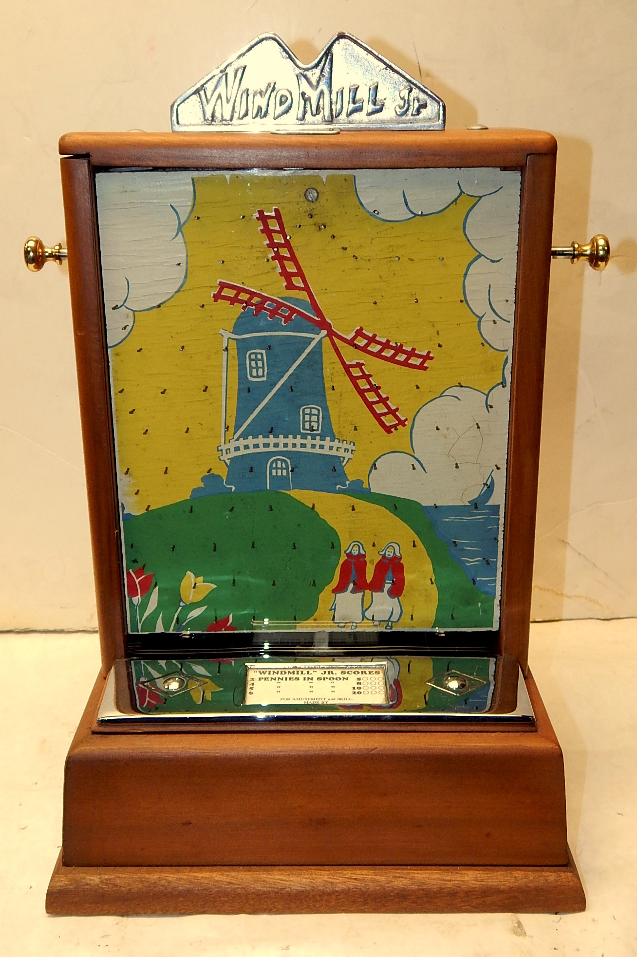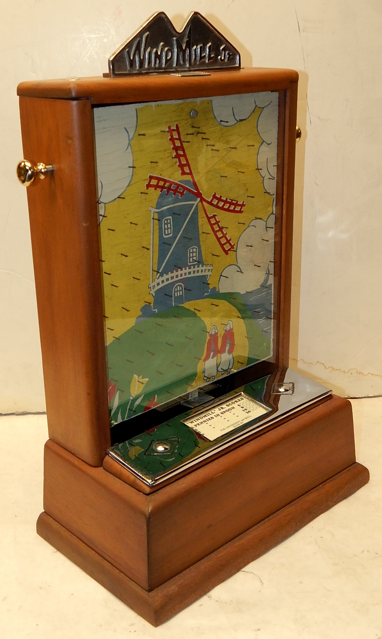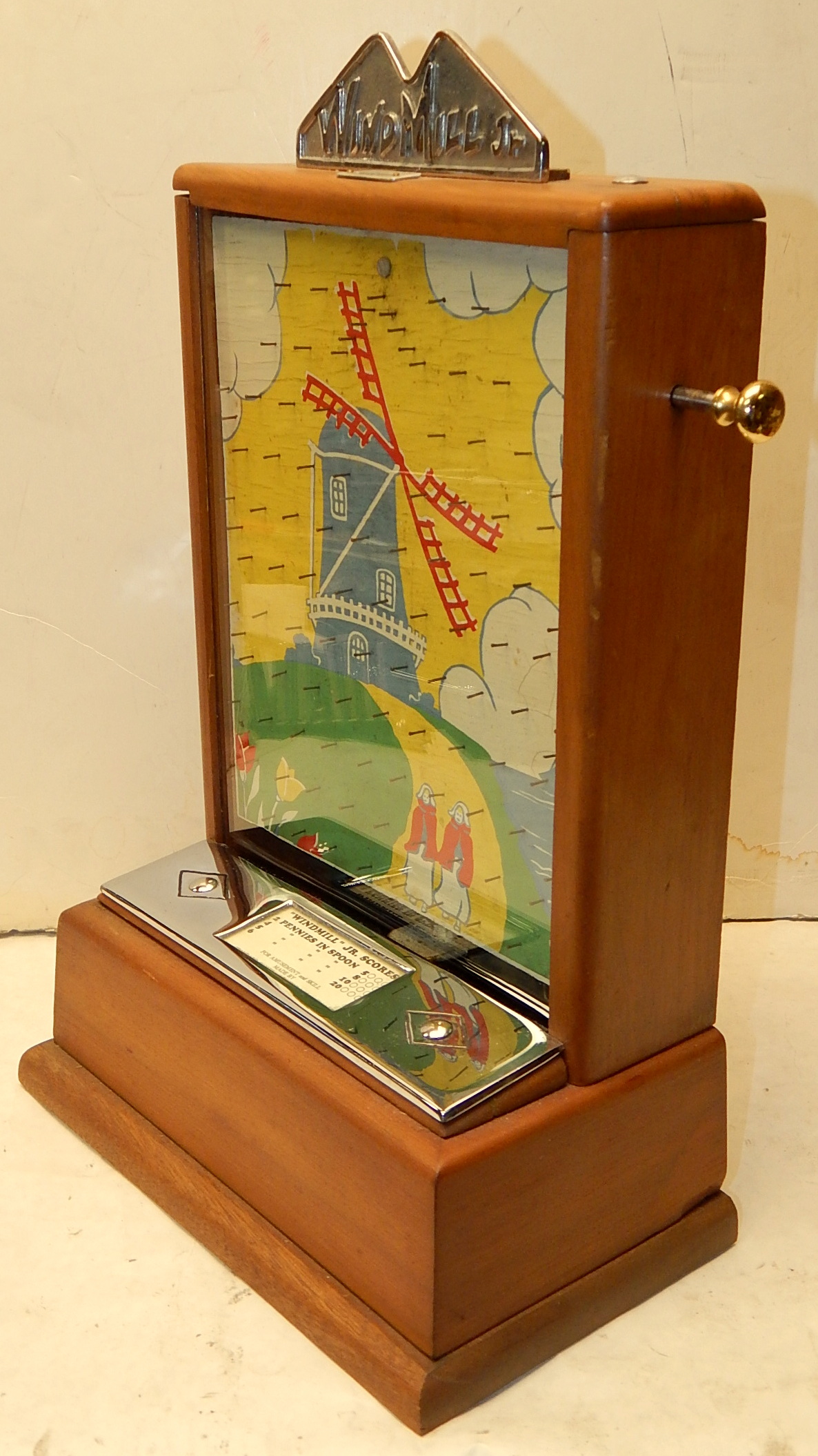 1946 Standard Games "WINDMILL" penny. In great condition for it's age. The war time counter top coin drop. 17 inches tall 11" wide with coin catcher at the bottom. Very colorfull graphics.