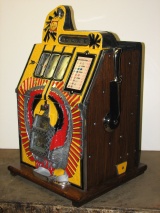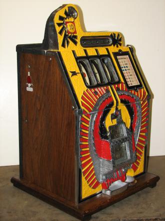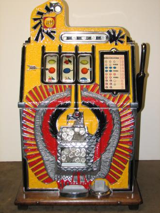 Mills 1937 War Eagle 10 cent, This is a very nice machine restored back to the original colors, Yellow, Red , Black. Jack pot with reserve, original back door and lock with one key, original cash box. " Pictures of the beautiful machine will soon be posted "