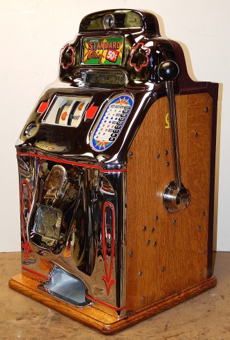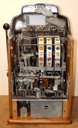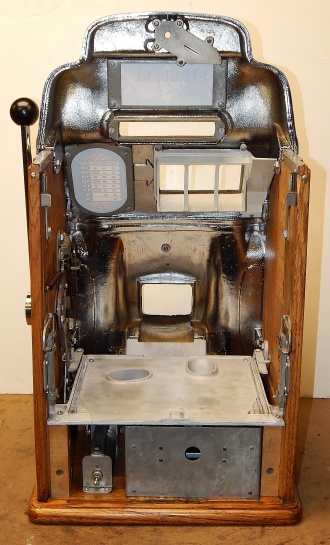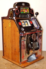 1946 Jennings "Chrome" Standard Chief 50 cent, Another large coin machine. New triple chrome plating, 10 out of a 10 mint condition. This machine has a new award card and marquee, original cash box, original back door, with ODJ original back door lock and key, original reel strips, jackpot with reserve. Plays and pays as it should. If your looking for a super nice number matching large coin machine in mint condition, here you are.
