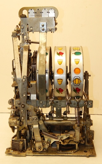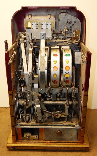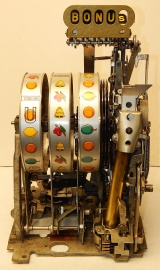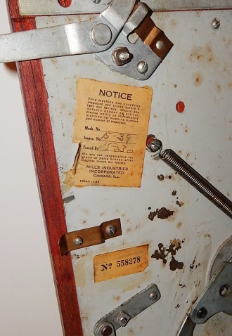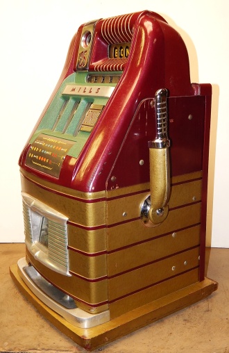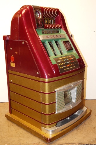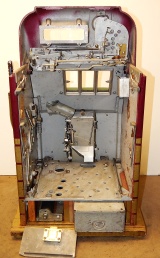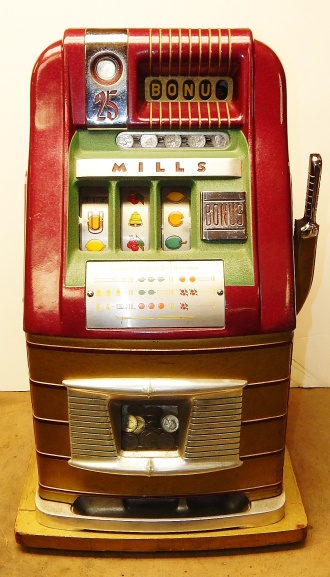 Mills 1948 Bonus Hi-Top 25 cent in original condition with the Hard to find Bonus feature, original reel strips, original back door, money box door, original cash box, all locks are Mills locks with two keys. When the BONUS letters on the first reel come up in order, corresponding letters will appear at the top right of the machine. Once the entire word BONUS is spelled out, you win 18 coins. This was another way Mills would try to keep people playing longer and if you had almost all the letters showing, it was hard to walk away.
