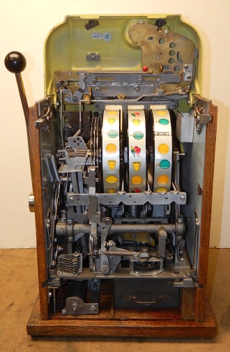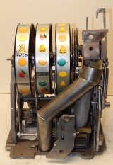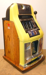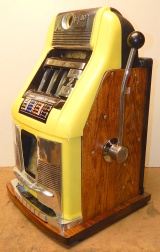 Mills 1959 Deuce Wild $1.00, This is a very nice machine previously restored back to the original colors Yellow with Black. All the trim on this machine is polish. Mint condition award card, original reel strips, token Jackpot with two $50 tokens. Very nice oak cabinet. Club handle, very easy to play. Plays very easy, 2-5 pay out.