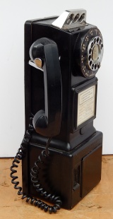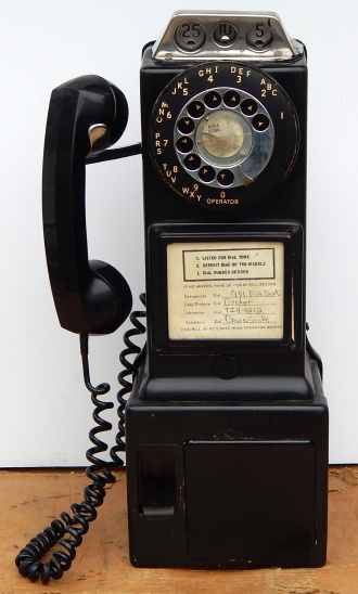 Antique Pay Phone, Western Electric. Receives calls, has a bell ringer. Just plug in to the wall. No keys.