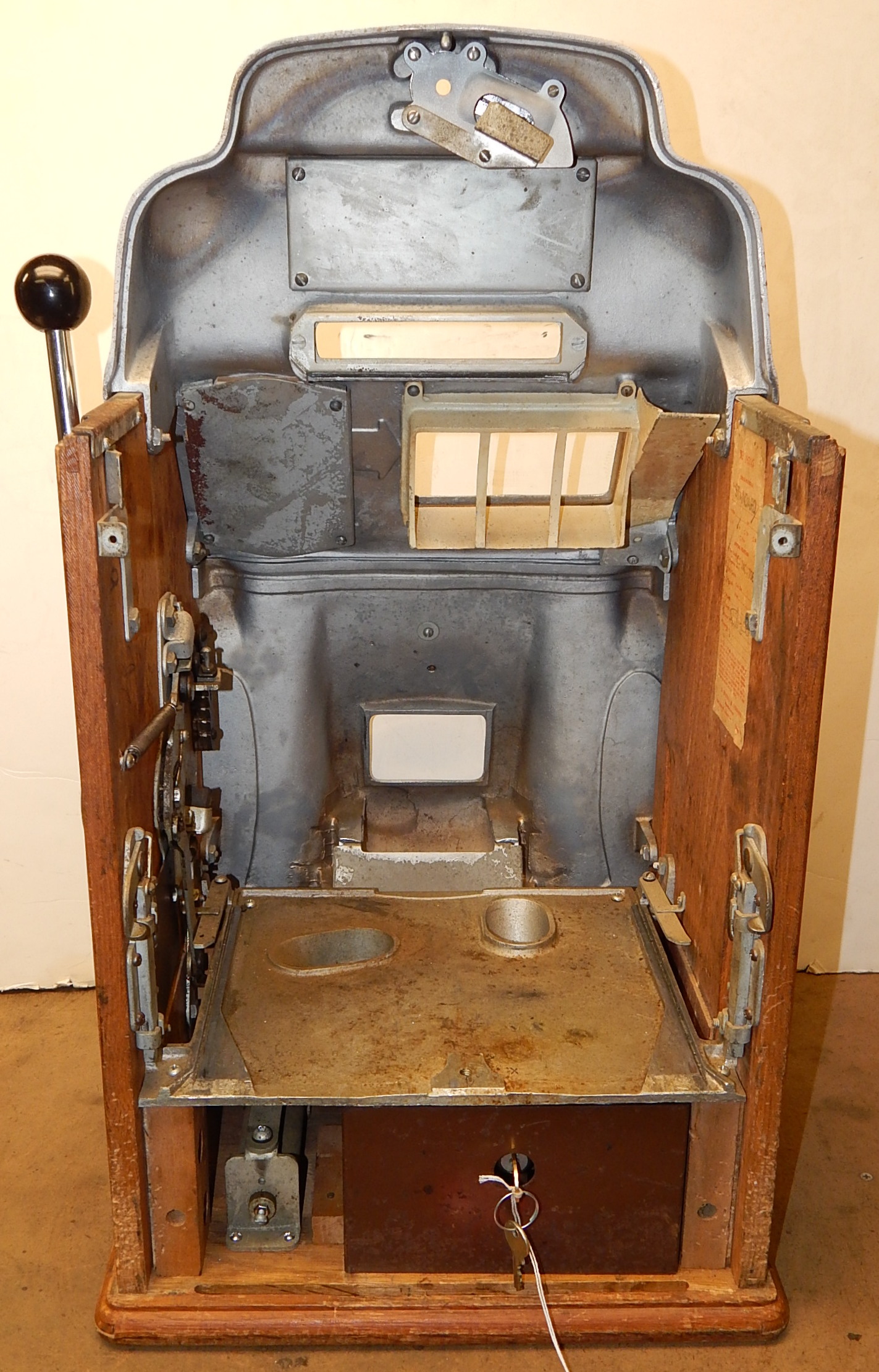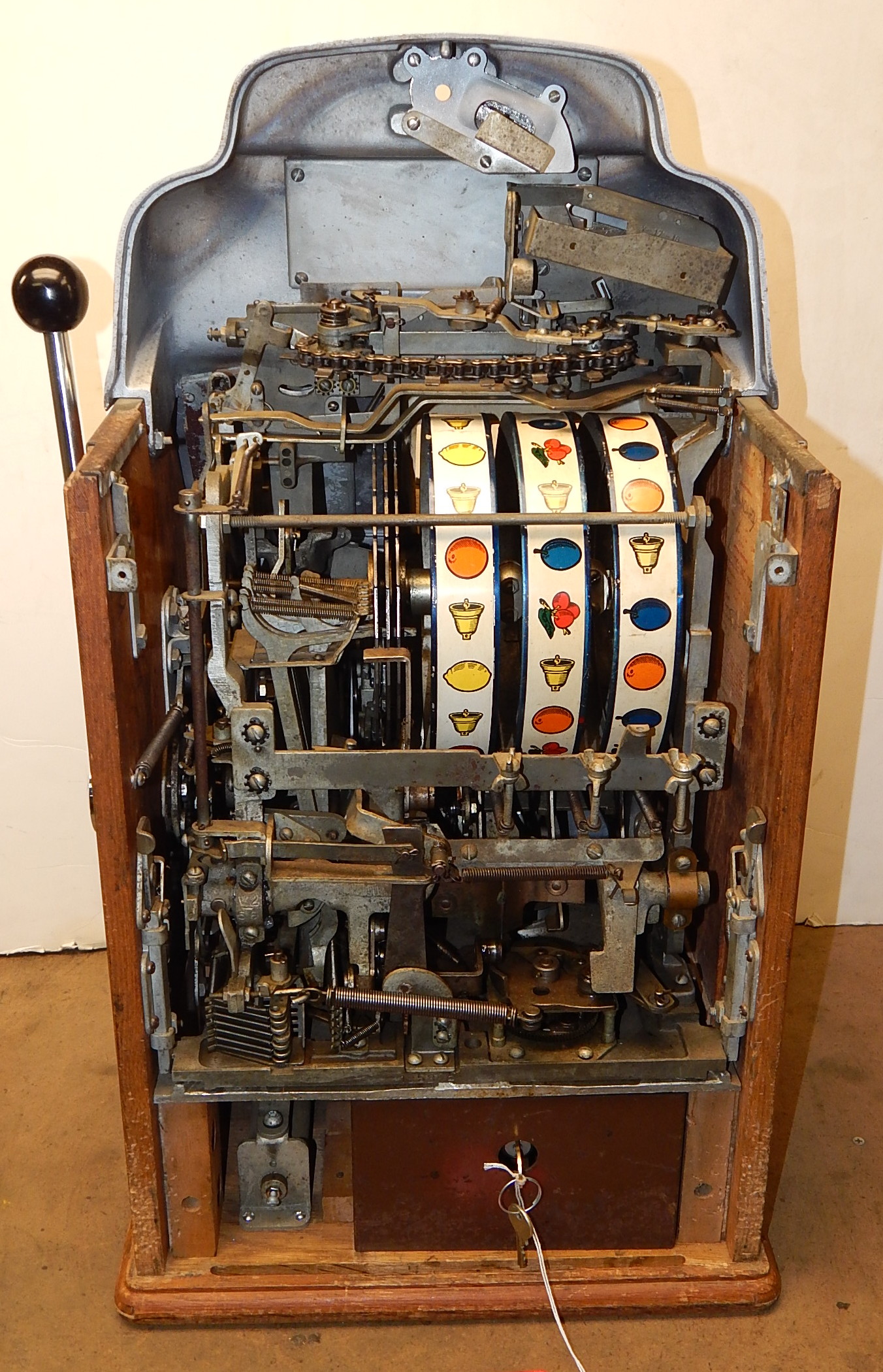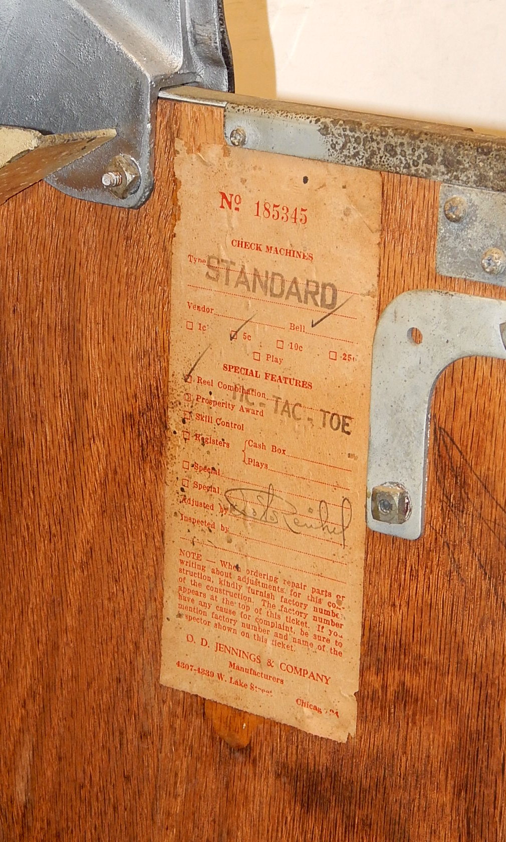 1948 Jennings Standard Chief 5 cent, a very nice original machine with matching numbers. This machine still has it's original chrome looks great for 74 years old, just beautiful. Original, cash box, back door with original ODJ Jennings lock and key. Plays nice and easy, pays as it should.