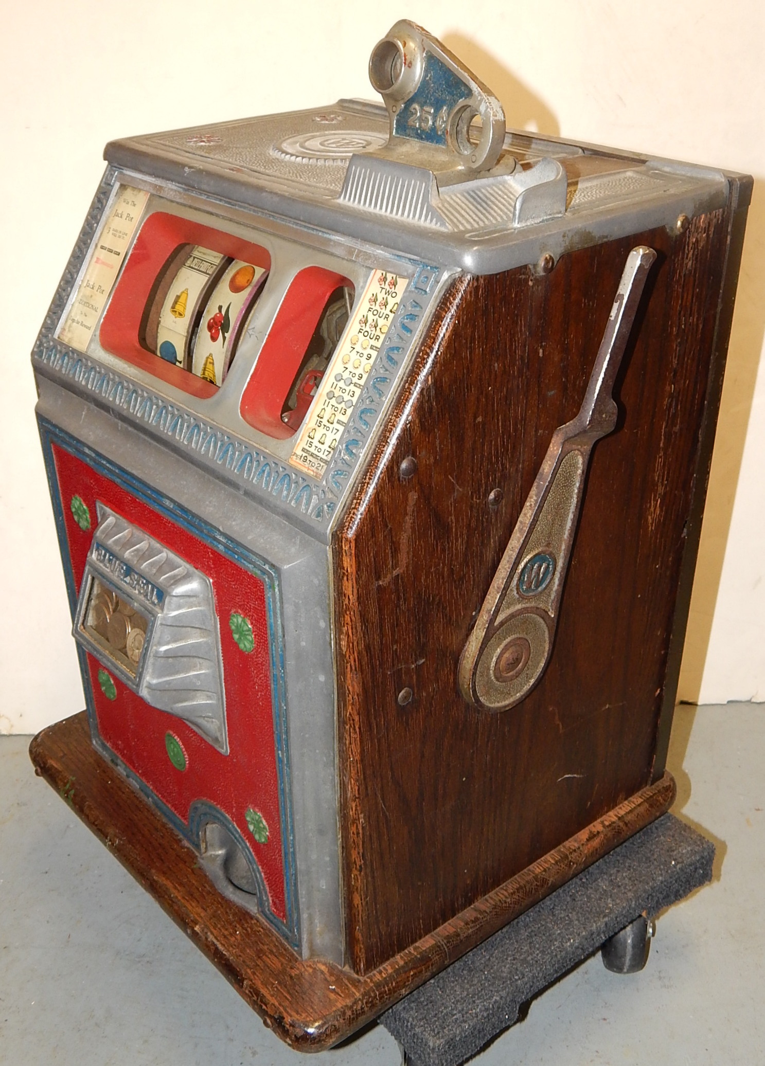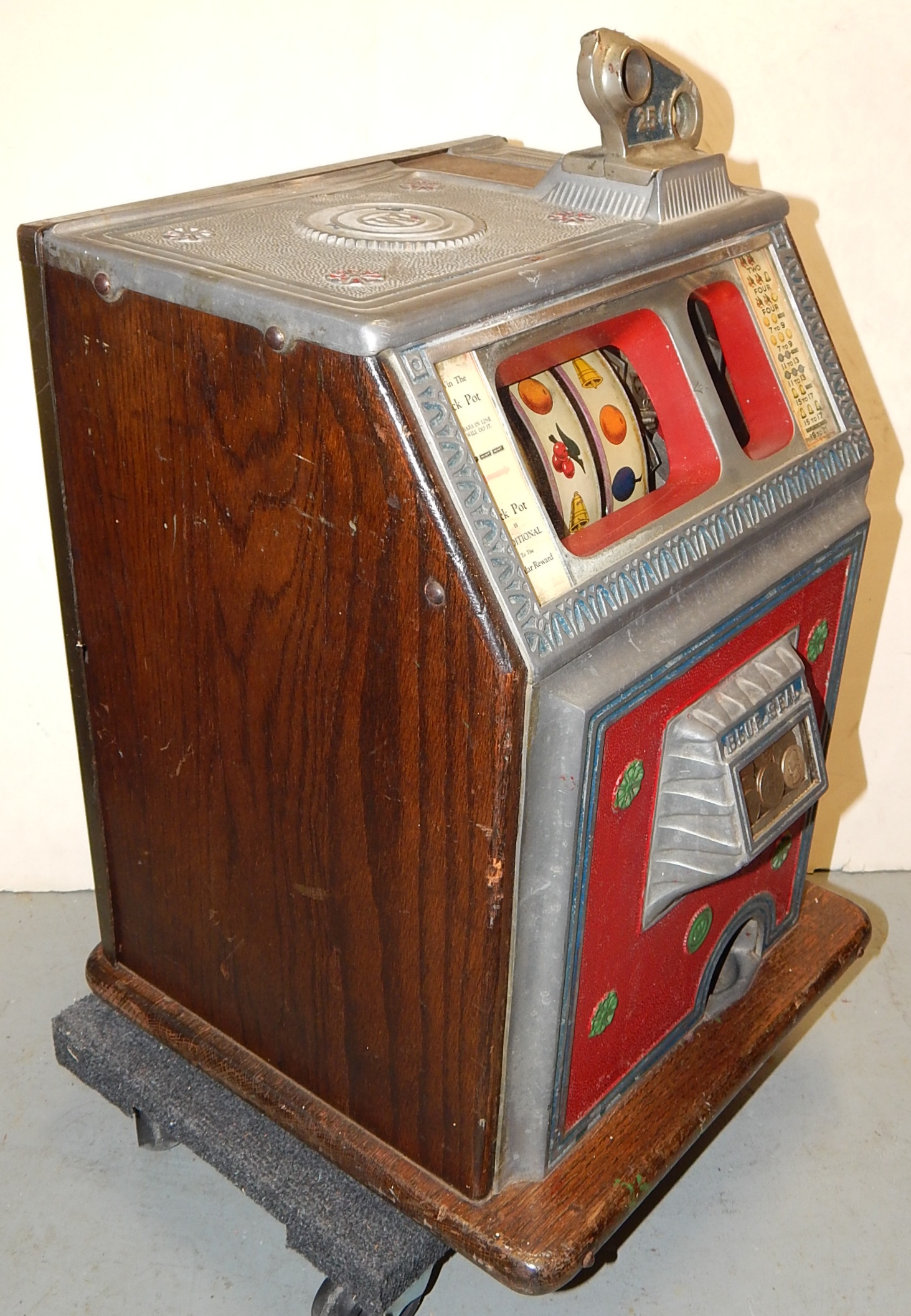Watling 1935 Blue Seal 5 cent, Original condition, (not restored). Original reel strips, original back door, jackpot, cash box, 2-4 pay out. Very nice original machine.