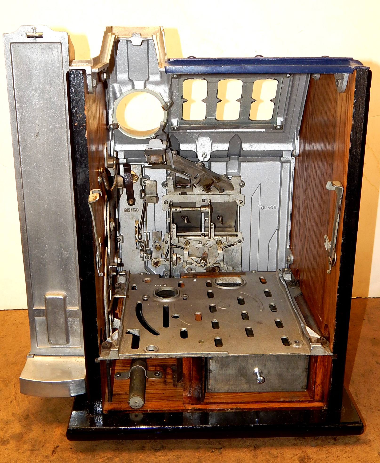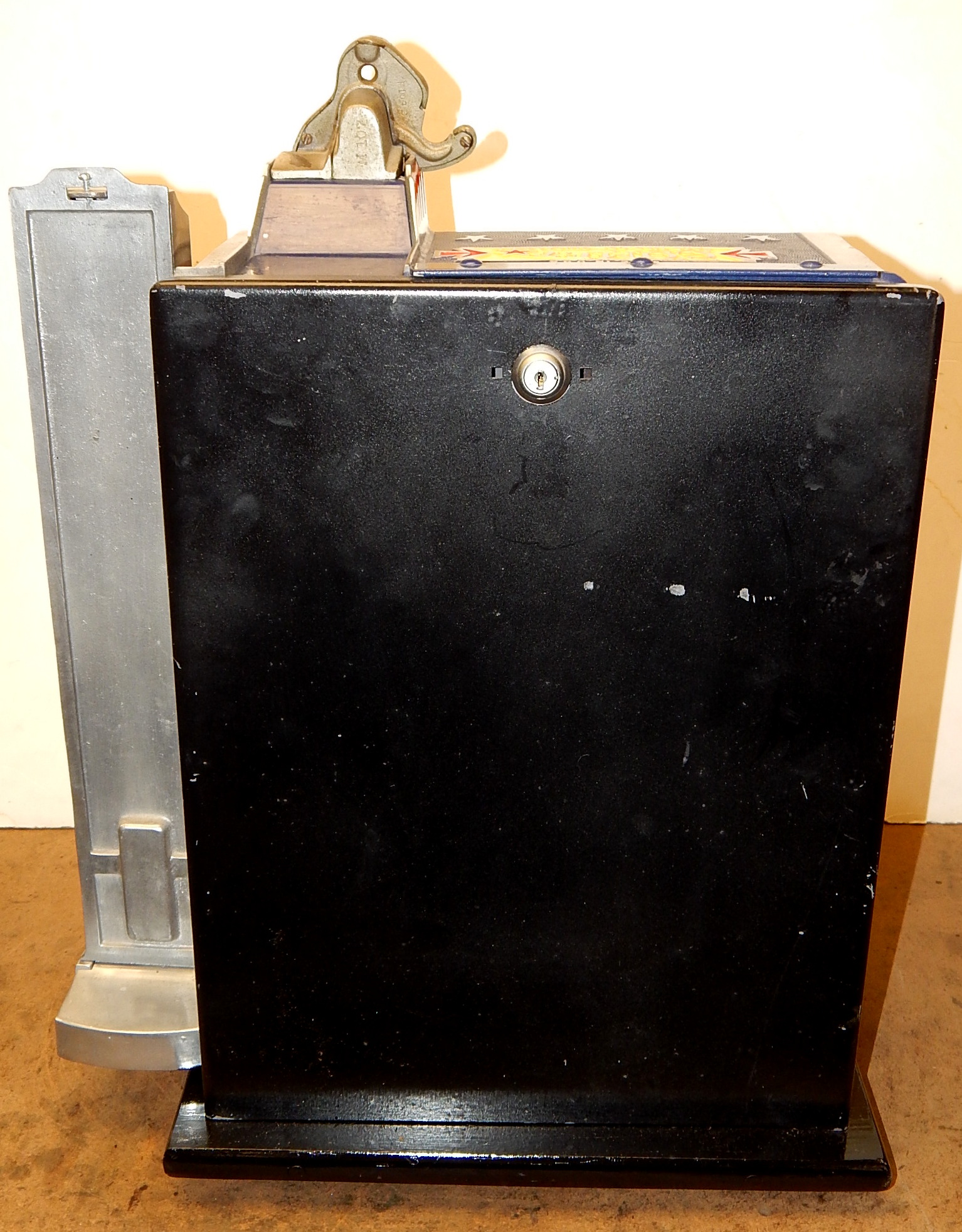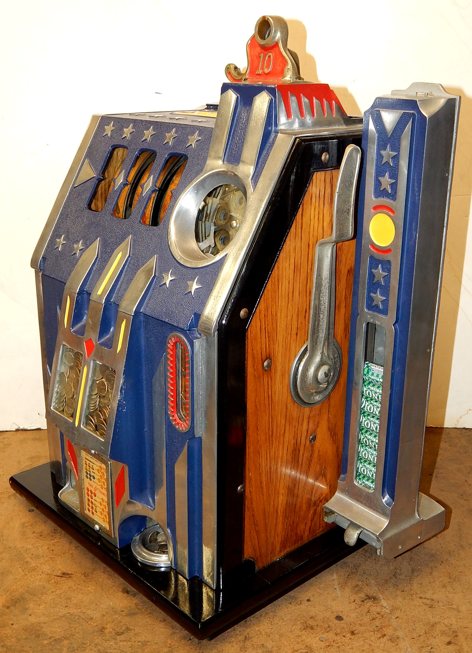1936 Pace Comet 5 cent, with Gold Award token vender, mint verder. Previously restored back to the original colors Blue, trimmed in red and yellow. Original reel strips, new award card. Original back door with lock and key. Original cash box, functional twin jackpots. Plays and pays as it should.