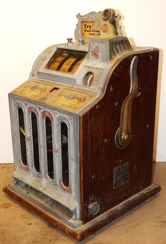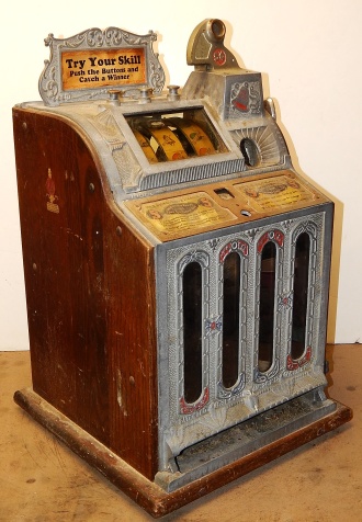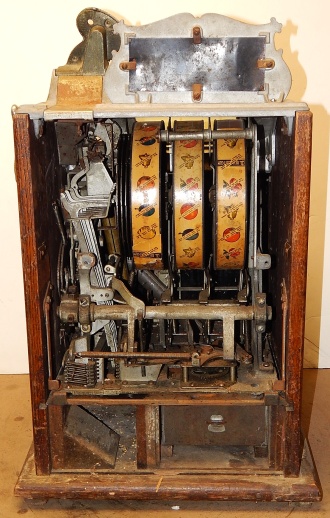 1927 Mills Front F.O.K. Operator Bell w/ Skill Stop, 5 cent. Original condition in line to be restored but, up for sale as is. Mint vendor, which give you a roll of mints every play. This was Mills way to get around the gambling laws back in the day. Original marquee card on the front and top. Skill Stop let's you try your skill to win. Original reel strips. The way you want to find them. Plays great and pays as it should.