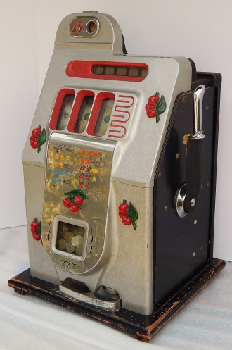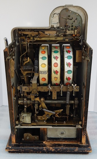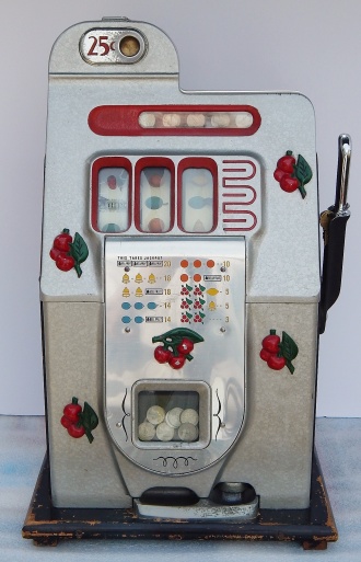 Mills 1944 Black Cherry 25 cent. "All original condition not restored" This is a very nice untouched original machine. Original back door with original Mills Lock and original Mills key. Jackpot with reserve. Plays very easy. If you are looking for an all original condition machine, here's the way you want to find them.