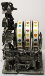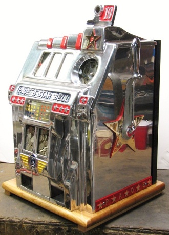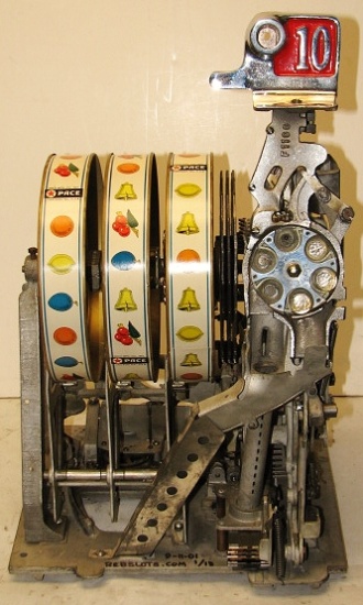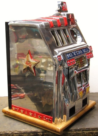 Pace 1949 "8" Star Comet 10 cent, original reel strips, original back door, original cash box with Pace lock and key. Both sides have a beautiful high polish stainless steel plates, looks like chrome. Play very nice. 2-5 pay out.