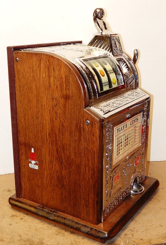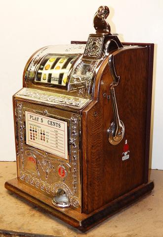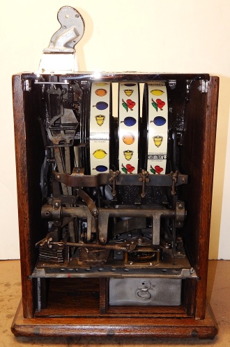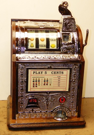 Mills Operator Bell 1918. Restored. Here is an old one, The castings on this machine are cast iron, nickel plated. Very nice oak cabinet. Original cash box. 2-4 pay out.